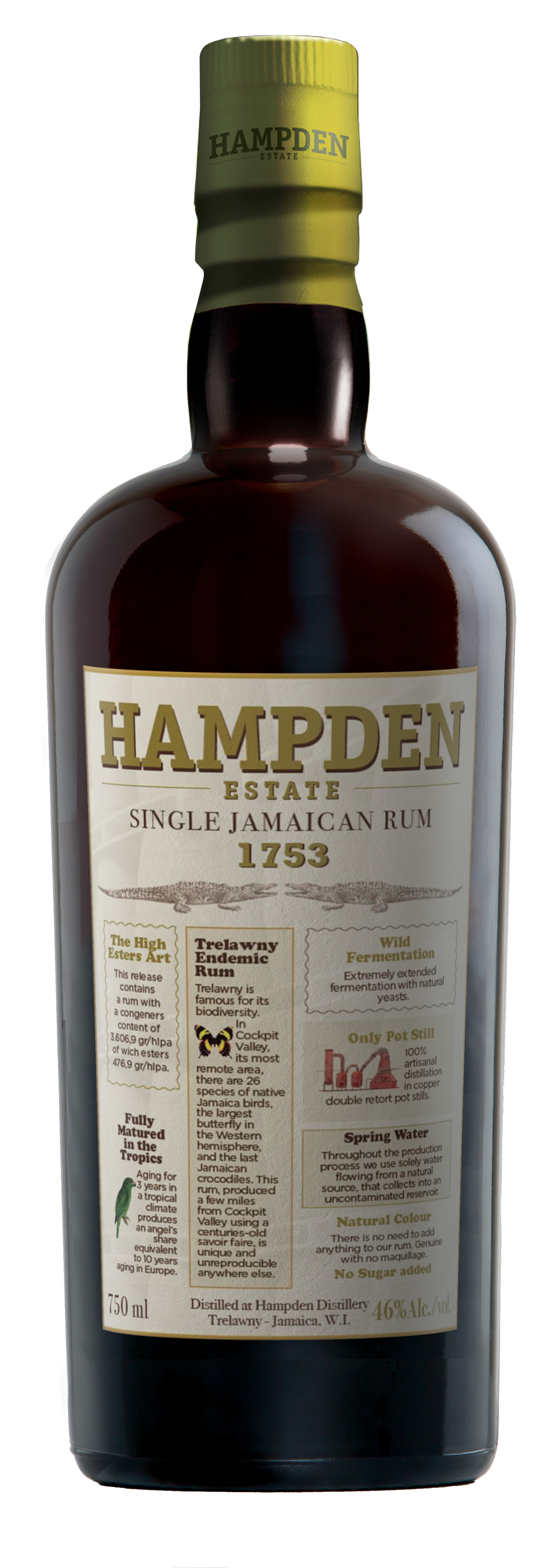 Hampden 1753 (HLCF) is a vibrant 3-year-old rum that pays tribute to the year Hampden Estate was founded. Crafted using time-honored methods that have remained untouched since the distillery was established, this rum stands as one of the new highlights of the collection. Bottled at 46%, this new core release captures the essence of Hampden Estate, making it an ideal choice for both sipping and mixing, and truly embodying the spirit of the distillery.